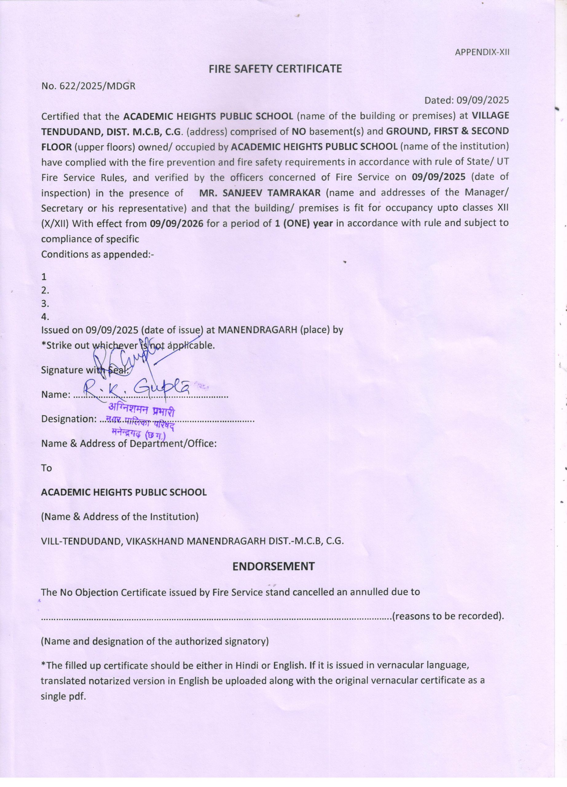 | 6 | COPY OF VALID FIRE SAFETY CERTIFICATE ISSUED BY THE COMPETENT AUTHORITY | FIRE SAFETY CERTIFICATE |