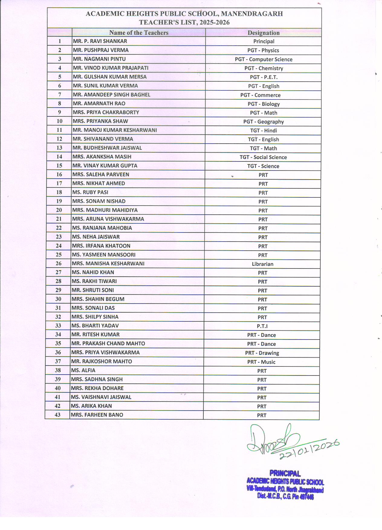 | 18 | DETAILS OF TEACHING STAFF | TEACHERS LIST |